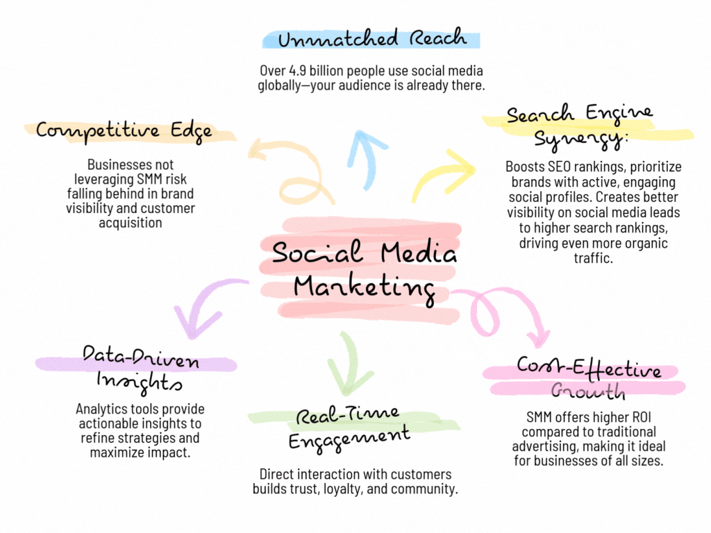 In today’s digital-first world, social media is more than just a platform for connection it’s a powerhouse for brand growth, customer engagement, and revenue generation. Social Media Marketing (SMM) leverages platforms like Facebook, Instagram, LinkedIn, Twitter, and TikTok to build brand awareness, drive traffic, and foster meaningful relationships with your audience.